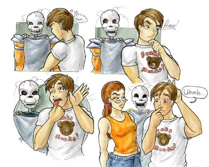 These are pages 1-3 of a guest comic Chuck did for my birthday. Davis gets into what he shouldn't (surprise) and Ms. Harper/s has to bail him out (surprise). ^_^ Calculator! Page 1 | Page 2 | Page 3 |